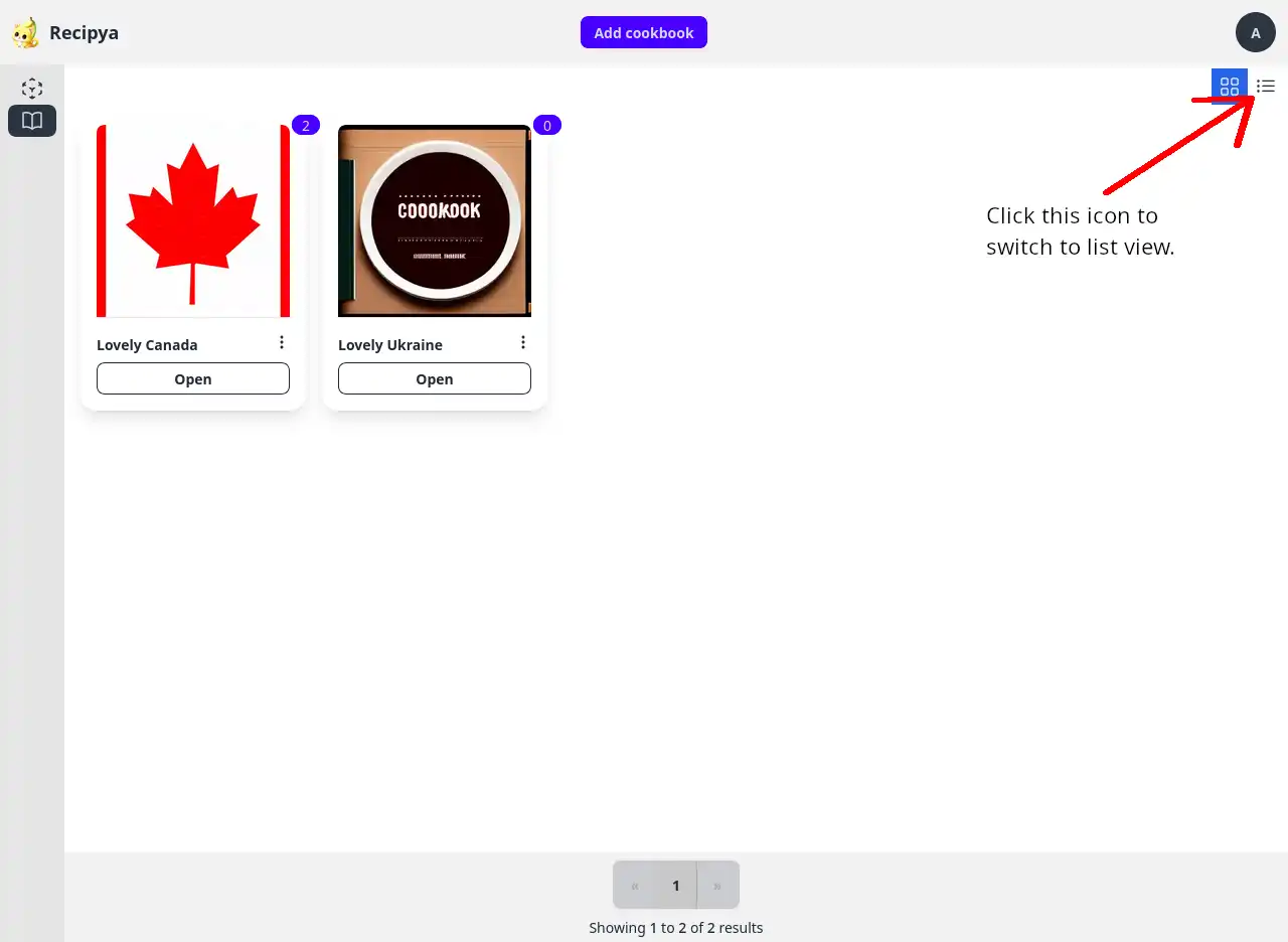 Cliquez sur l’image d’un livre de recettes pour la mettre à jour. Vous serez alors invité à utiliser le sélecteur de fichiers du système d’exploitation pour sélectionner une image.